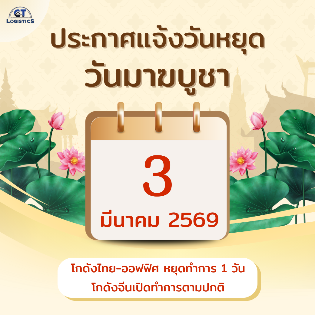 โกดังไทย-ออฟฟิศ หยุดทำการ 1 วันเนื่องในวันมาฆบูชา